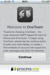You can use the OneTeam app to connect to SureVoIP IM from any device. It should just take a few seconds to get set up.